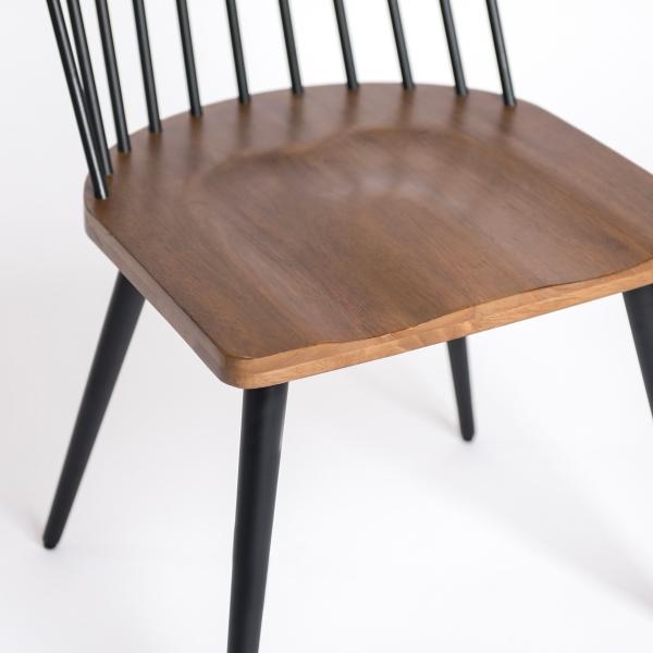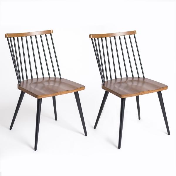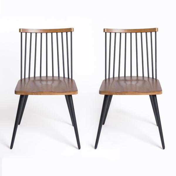 Elevate your dining room with our Holland Black & Brown Dining Chairs! Featuring sculpted wooden seats and sleek black metal frames, these chairs are the perfect blend of style and function. Set includes two (2) dining chairs Each chair measures 21.5W x 24.5D x 34H in.; seat height: 18 in. Crafted with a wood and metal frame Black metal finish Brown wood finish Features curved spindle backrests Sculpted seats Tapered legs Weight capacity: 300 lbs. Assembly required Not intended for commercial use Care: Wipe with a soft, dry cloth. This item is available at Kirklands.com only, not available in stores.