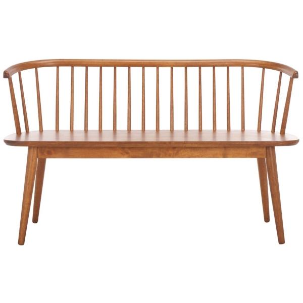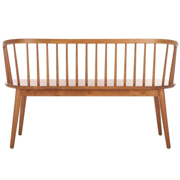 Bring timeless elegance to any corner with this Honey Brown Wood Blanchard Bench! This bench features a subtly curved spindle back, a sculpted seat, and tapered legs that add a sleek modern touch to the bench. Bench measures 52.6W x 19.4D x 31.3H in. Crafted of rubberwood Honey brown finish Features a spindle backrest Weight: 33 lbs. Weight capacity: 450 lbs. Assembly required Not intended for commercial use Care: Wipe with a soft, dry cloth. This item is available at Kirklands.com only, not available in stores. Please note: this item cannot be shipped to APO/FPO addresses.