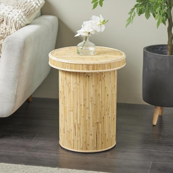 Enhance your home's bohemian style with our the natural look of our Honey Wood Cylinder Accent Table. This table's slender shape makes for an ideal end table! Table measures 19.7H in. x 15.8 in. in diameter Crafted of MDF Textured, honey finish Cylinder shape Linear wood stripe design Weight: 8.71 lbs. Weight capacity: 150 lbs. No assembly required Care: Dust with a soft, dry cloth. This item is available at Kirklands.com only, not available in stores. Please note: this item cannot be shipped to APO/FPO addresses.