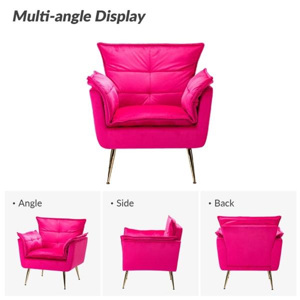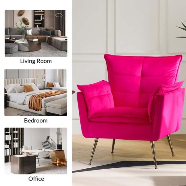 Make a bold statement with this Ilia Fuchsia Velvet Accent Chair! The tufted backrest and armrests offer plush support, while the wide seat ensures a cozy and inviting experience. Chair measures 31.2W x 29D x 35H in. Crafted with a wood frame Upholstered in fuchsia velvet and filled with high-density foam Gold metal leg finish Features a tufted cushion design Built-in s-spring Seat measures 19W x 18D x 18H in. Weight: 34 lbs. Weight capacity: 250 lbs. Assembly required Not intended for commercial use Care: Spot clean. This item is available at Kirklands.com only, not available in stores. Please note: this item cannot be shipped to APO/FPO addresses.