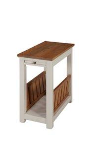 Our Ivory and Natural Wood Magazine Shelf Accent Table features a two-tone design that complements any farmhouse, cottage, or coastal style! You'll love how the pull-out drawer provides extra table space for small decorative accents. Table measures 12L x 24W x 24H in. Crafted of wood Ivory frame finish Natural brown wood tabletop and shelf finish Features one (1) bottom magazine shelf Includes one (1) pull-out drawer Weight: 27 lbs. Assembly required Not intended for commercial use Care:: Wipe clean with a damp cloth. This item is available at Kirklands.com only, not available in stores. Please note: this item cannot be shipped to APO/FPO addresses. WARNING: Cancer and Reproductive Harm - For more information go to www.P65Warnings.ca.gov.