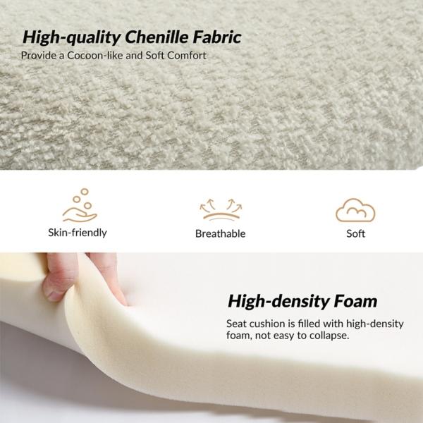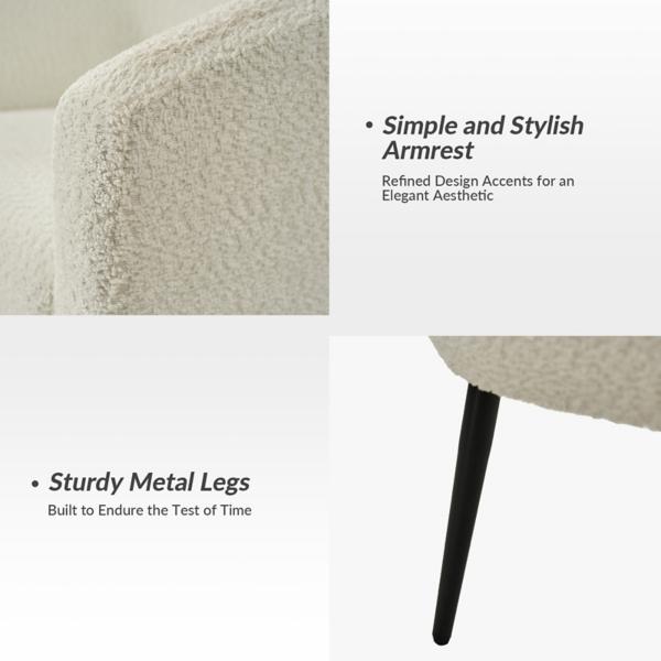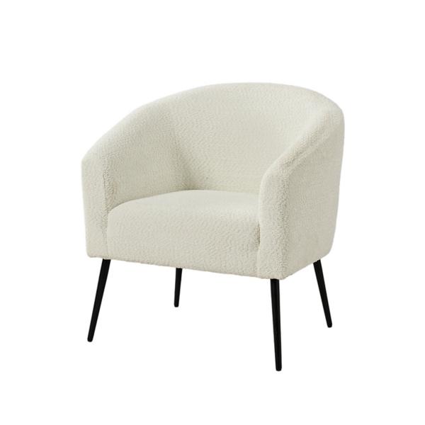 Complement your home with the Ivory Boucle Chenille George Accent Chair! It’s the perfect cozy seat to relax and read your favorite book series.You’ll love it in your living room or home office! Overall dimensions Width: 27.5 in. Depth: 24 in. Height: 29.5 in. Crafted with a wood frame High-density foam fill Upholstered in chenille and boucle fabric Black metal leg finish Curved back and arm rests Weight: 20.29 lbs. Weight capacity: 300 lbs. Some assembly required Not intended for commercial use Care: Spot clean. This item is available at Kirklands.com only, not available in stores. Please note: this item cannot be shipped to APO/FPO addresses.