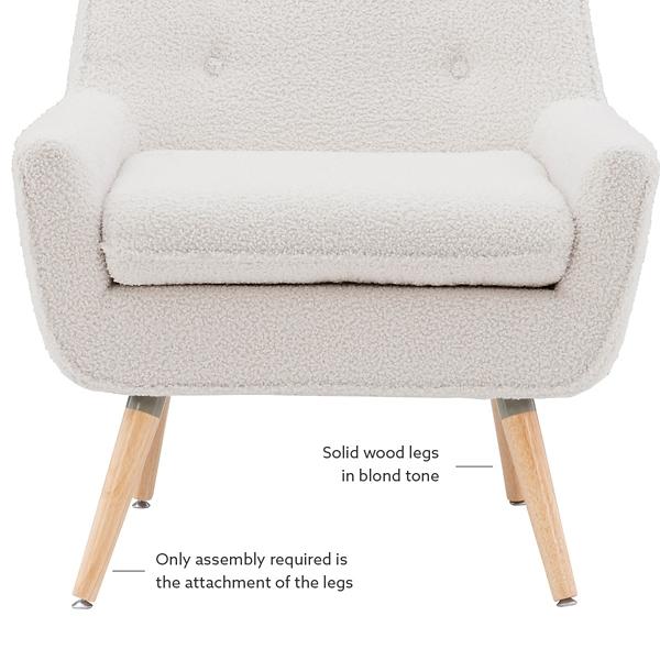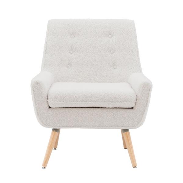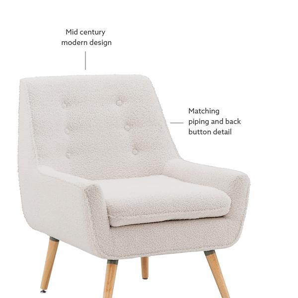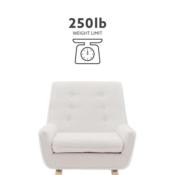 Make any space look cozy and cool with our Ivory Faux Sherpa Tufted Accent Chair! You’ll love how glamorous this soft piece looks in your midcentury modern home. Chair measures 30.8L x 27.5W x 32.3H in.; Seat height: 18.5 in. Crafted with a wood frame Faux sherpa upholstery with foam fill Natural wood finish on legs White fabric finish Accented with button-tufting details Weight limit: 250 lbs. Some assembly required Not intended for commercial use Made in Vietnam Care: Spot clean. This item is available at Kirklands.com only, not available in stores. Please note: this item cannot be shipped to APO/FPO addresses. WARNING: This product can expose you to chemicals including formaldehyde and phthalate which are known to the state of California to cause cancer and birth defects or other reproductive harm. For more information go to www.P65Warnings.ca.gov.