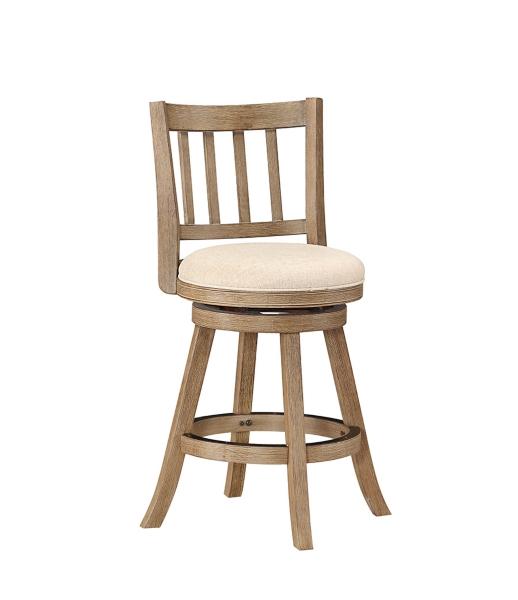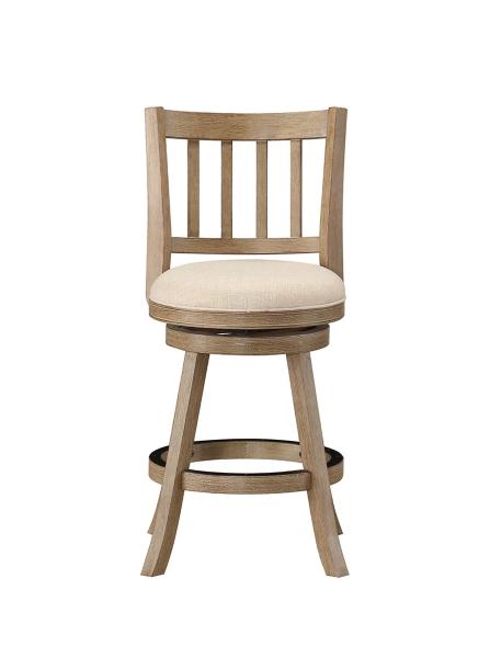 This Ivory Linen Slat Back Swivel Counter Stool will fit perfectly at your kitchen counter. Its light, natural finishes and simple, sleek style will go with any decor! Plus, you'll love its 360 degree swivel design. Stool measures 18L x 21.5W x 37.5H in.; Seat height measures 24H in. Crafted with a rubber wood frame Brown wire-brush frame finish Upholstered in ivory linen fabric with high-density foam fill Features 360 degree swivel design Slat seat back design Features a footrest protected by a metal kick plate Weight capacity: 250 lbs. Assembly required Not intended for commercial use Care: Dust with a soft, dry cloth. Spot clean fabric. This item is available at Kirklands.com only, not available in stores. Please note: this item cannot be shipped to APO/FPO addresses.