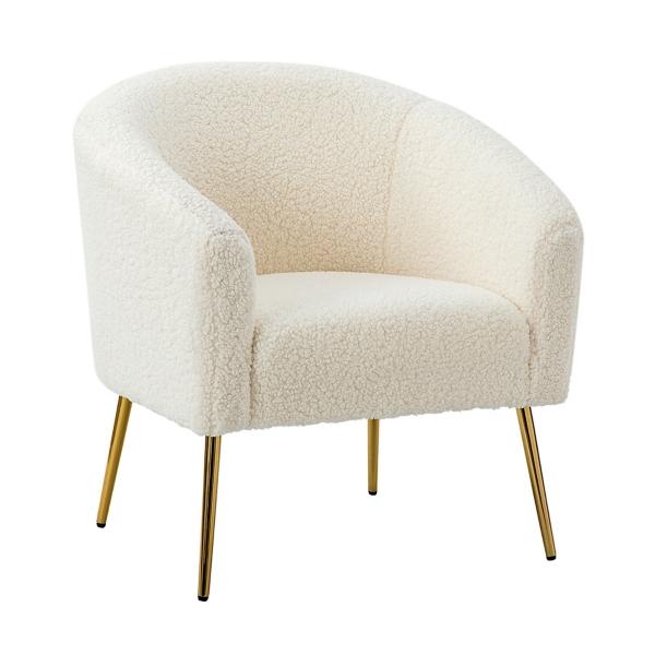 Accent your space with this Ivory Sherpa Venice Accent Chair! With its cozy fabric and chic gold legs, you'll love experiencing ultimate comfort without sacrificing style. Overall dimensions Width: 27.5 in. Depth: 24.5 in. Height: 30 in. Crafted of solid wood, manufactured wood, and metal Upholstered in ivory polyester with high-density foam Gold leg finish Features a faux Sherpa fabric texture Seat dimensions: 18W x 18.5D x 17.5H in. Weight: 20 lbs. Weight capacity: 250 lbs. Assembly required Not intended for commercial use Care: Spot clean. This item is available at Kirklands.com only, not available in stores. Please note: this item cannot be shipped to APO/FPO addresses.