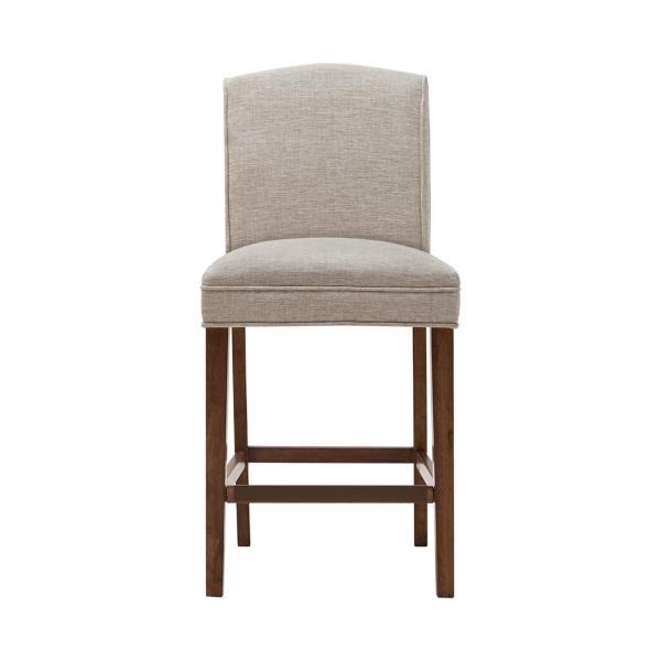 The sophisticated style of this Ivory Upholstered Wood Counter Stool adds the perfect touch to any counter or bar area. Its classic, minimalist design will easily complement a wide variety of decor styles! Overall dimensions Width: 19.5" Depth: 22.5" Height: 40.25" Seat height: 26" Crafted with a wood and plywood frame Brown base finish Upholstered in an ivory and camel tone fabric High density foam fill Features a metal kick plate Weight: 18.22 lbs. Assembly required Not intended for commercial use Care: Spot clean only. This item is available at Kirklands.com only, not available in stores. Please note: this item cannot be shipped to APO/FPO addresses.