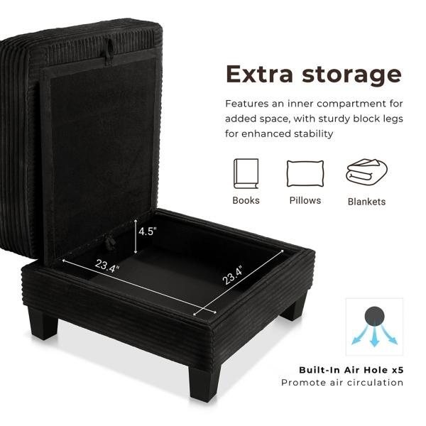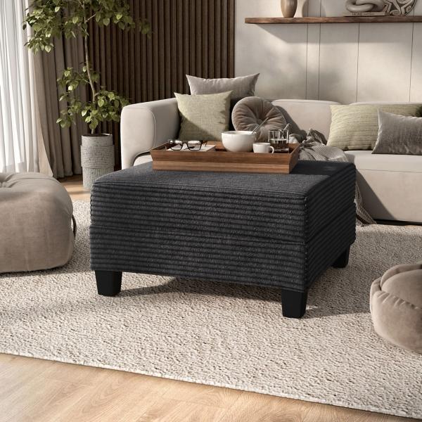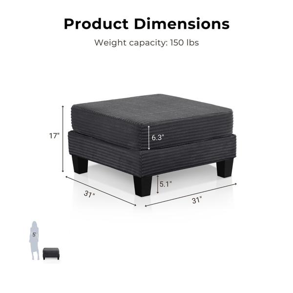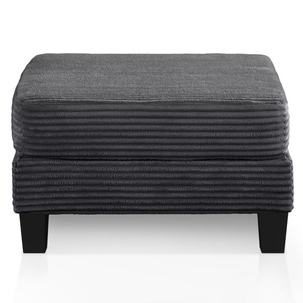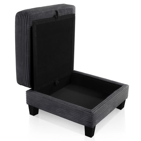This Kasin Gray Chenille Storage Ottoman is perfect for small-space living! It features a spacious inner storage compartment that helps keep your space tidy and doubles as a comfortable footrest or extra seating. Ottoman measures 31L x 31W x 18H in. Crafted with a wood frame Upholstered in dark gray chenille fabric and filled with high-density foam Ribbed fabric design Square shape Features interior storage space Black legs Weight: 37 lbs. Weight capacity: 150 lbs. Assembly required; see Info & Guides in the drop down below to view or print assembly info Not intended for commercial use Care: Spot clean. This item is available at Kirklands.com only, not available in stores. Please note: this item cannot be shipped to APO/FPO addresses.