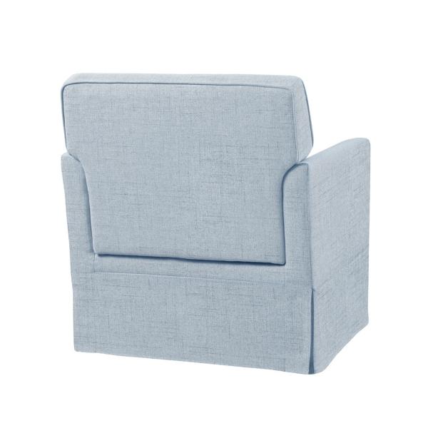 Bring comfort and style to your space this Light Blue Slipcover Armchair! Its classic design and light blue upholstery will elevate your living room with a timeless yet fashionable touch. Chair measures 30W x 30.5D x 33H in.; seat height:18 in. Crafted with a wood frame Upholstered in polyester and filled with high-density foam Blue upholstery finish Features track arms and a skirted base Removable seat cushion; slipcover cannot be removed Weight: 42 lbs. Weight capacity: 300 lbs. Toolless assembly Not intended for commercial use Care: Spot clean. This item is available at Kirklands.com only, not available in stores. Please note: this item cannot be shipped to APO/FPO addresses.