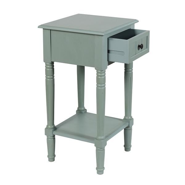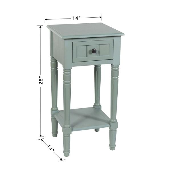 Give your space a stylish touch with this Light Blue Wood Square Hampton Accent Table! This end table features carved details and storage space for a functional and elegant addition to your living room. Accent table measures 14W x 14D x 28H in. Crafted of manufactured wood Light blue finish Square shape Features one (1) drawer and one (1) lower shelf Accented with carved drawer and leg details Weight: 14.96 Assembly required Not intended for commercial use Care: Wipe with a soft, dry cloth. This item is available at Kirklands.com only, not available in stores. Please note: this item cannot be shipped to APO/FPO addresses.