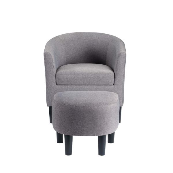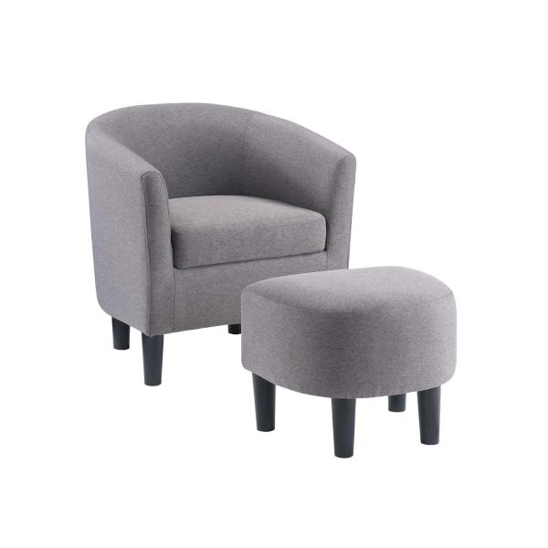 Relax in style with this Light Gray Churchill Accent Chair & Ottoman Set! This chair and ottoman set features soft upholstery with thick, padded cushions to make this your new go-to cozy chair. Set includes one (1) chair and one (1) ottoman Chair measures 26.25W x 25D x 27.5H in.; seat height: 17.5 in. Ottoman measures 18.75W x 16.5D x 15.5H in. Set crafted with a wood frame Upholstered in gray polyester and filled with high-density foam Features a classic barrel chair design U-shaped ottoman Assembly required Not intended for commercial use Care: Spot clean. This item is available at Kirklands.com only, not available in stores. Please note: this item cannot be shipped to APO/FPO addresses.