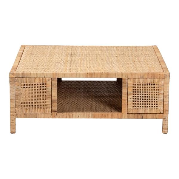 Accentuate your home's bohemian style with our Light Honey Rattan Wrapped Coffee Table. The table's warm finish will exquisitely compliment dark wood accents. Accent table measures 39.4L x 39.4W x 15.7H in. Crafted of mahogany wood and rattan Wrapped in woven rattan Light honey finish Features one (1) open lower tier Square shape Weight: 46.3 lbs. No assembly required Not intended for commercial use Care: Dust with a soft, dry cloth. This item is available at Kirklands.com only, not available in stores. Please note: this item cannot be shipped to APO/FPO addresses. WARNING: Cancer and Reproductive Harm - For more information go to www.P65Warnings.ca.gov.