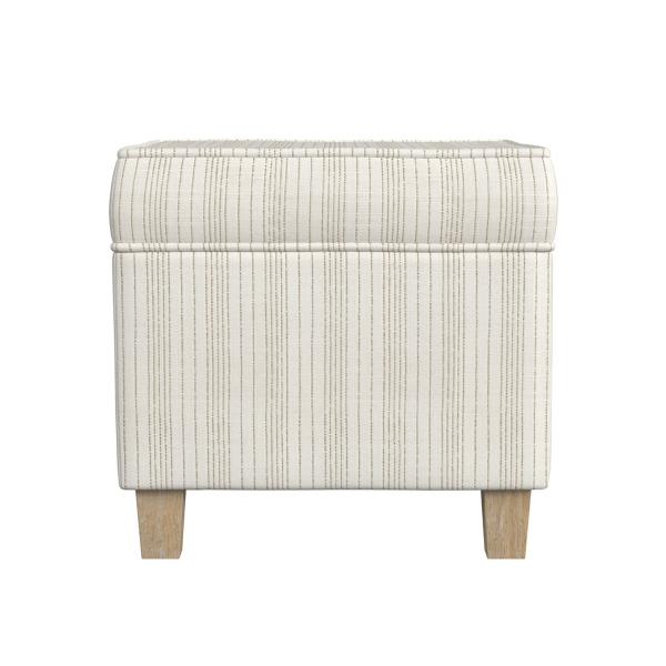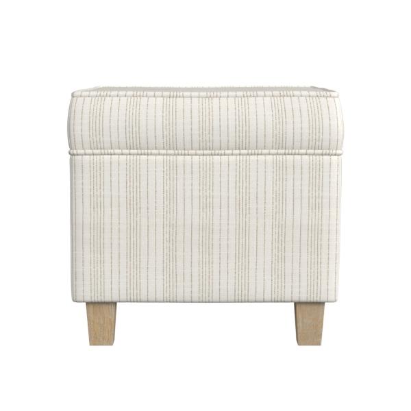 Bring a touch of pattern to your space with this Marigold Stripe Upholstered Square Storage Ottoman! You'll love how this ottoman elevates your home as a sophisticated storage solution! Ottoman measures 17.5L x 17.5W x 16.5H in. Crafted with a plywood and MDF frame Upholstered in polyester with a foam cushion fill Natural leg finish Cream and light brown pinstripe upholstery finish Features a lift-off lid Square shape Weight capacity: 250 lbs.; weighs 15.4 lbs. No assembly required Not intended for commercial use Care: Spot clean with damp cloth only. This item is available at Kirklands.com only, not available in stores. Please note: this item cannot be shipped to APO/FPO addresses. WARNING: Cancer and Reproductive Harm - For more information go to www.P65Warnings.ca.gov.