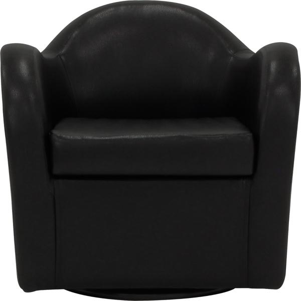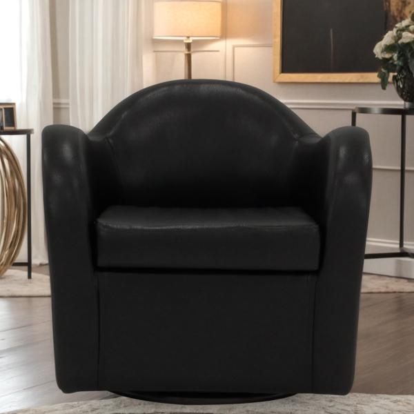 Take it easy in this Max Black Faux Leather Swivel Club Accent Chair! This stylish swivel accent chair has an eye-catching design with black faux leather to elevate any space. Accent chair measures 30.5W x 27D x 30H in. Crafted with a wood and metal frame Upholstered in black faux leather and filled with high-density foam Features a traditional club chair design Curved armrests and backrest 360 degree swivel capability Seat dimensions: 20.5W x 19.5D x 19H in. Weight: 34 lbs. Weight capacity: 300 lbs. Crafted with sustainable materials No assembly required Made in the United States Not intended for commercial use Care: Spot clean. This item is available at Kirklands.com only, not available in stores. Please note: this item cannot be shipped to APO/FPO addresses.