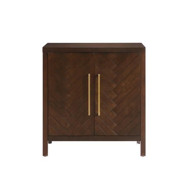 Store and show off your belongings in style with our stunning Mocha Mod Herringbone Cabinet. The rich brown finished wood looks exquisite with the patterned panel doors. Cabinet measures 30.3L x 14.5W x 32.3H in. Crafted of wood with metal legs and hardware Brown finish with brushed gold hardware Features a herringbone pattern on cabinet doors Includes two (2) interior adjustable shelves Cabinet doors have magnetic closures Includes adjustable levelers on legs Weigh limit: 15 lbs. per shelf Some assembly required Not intended for commercial use Care: Wipe with soft, damp cloth This item is available at Kirklands.com only, not available in stores. Please note: this item cannot be shipped to APO/FPO addresses. WARNING: This product can expose you to chemicals including wood dust and lead which are known to the state of California to cause cancer and birth defects or other reproductive harm. For more information go to www.P65Warnings.ca.gov.