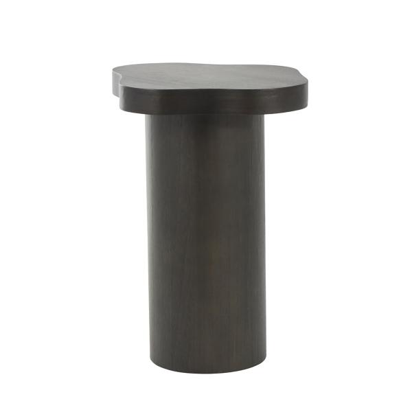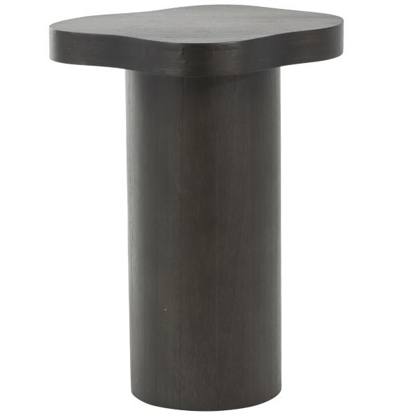 Emphasize your home's contemporary style with the trendy design of our Modern Shaped Black Wood Accent Table. You'll be able to decorate any space with this table's slim frame! Table measures 15.1L x 14.6W x 23.1H in. Crafted of MDF and rubber wood Black finish Cylinder shape Rounded square tabletop Weight: 9.94 lbs. Weight capacity: 100 lbs. No assembly required Care: Dust with a soft, dry cloth. This item is available at Kirklands.com only, not available in stores. Please note: this item cannot be shipped to APO/FPO addresses. WARNING: Cancer and Reproductive Harm - For more information go to www.P65Warnings.ca.gov.