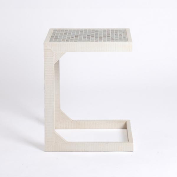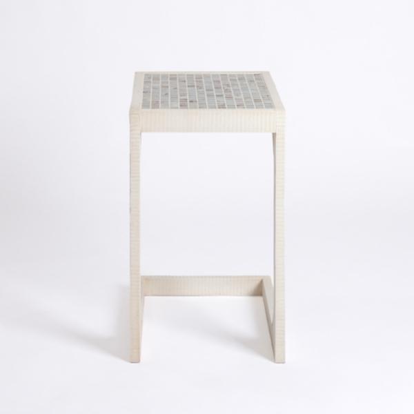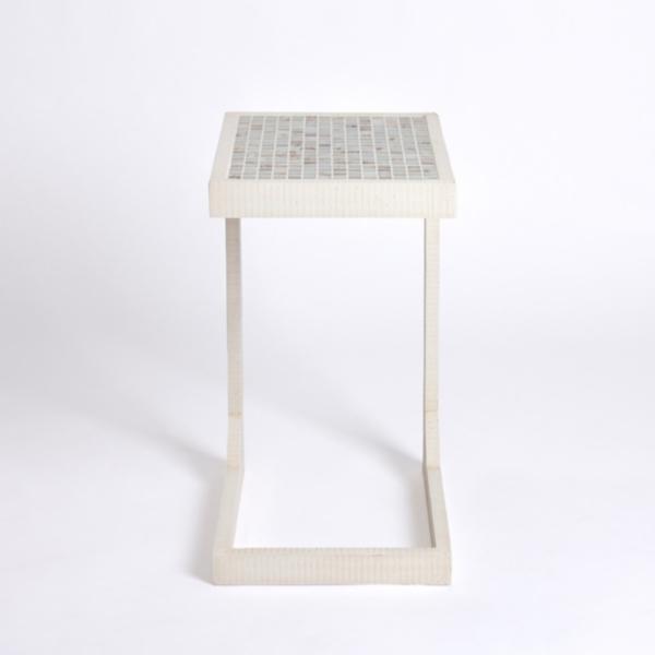 Refresh your space with our Mosaic Tile White Wood C-Table! Featuring a light and breezy design, this accent table is perfect for a coastal-inspired home or beachside oasis! Table measures 17.8L x 14W x 24.75H in. Crafted of wood and tile White wood finish Square mosaic tile tabletop design Features a C shape Hues of blue, white, and brown Weight: 5 lbs. No assembly required Not intended for commercial use Care: Wipe with a soft, dry cloth. Contact your local Kirkland's store for availability. Quantities and selection may vary by location.