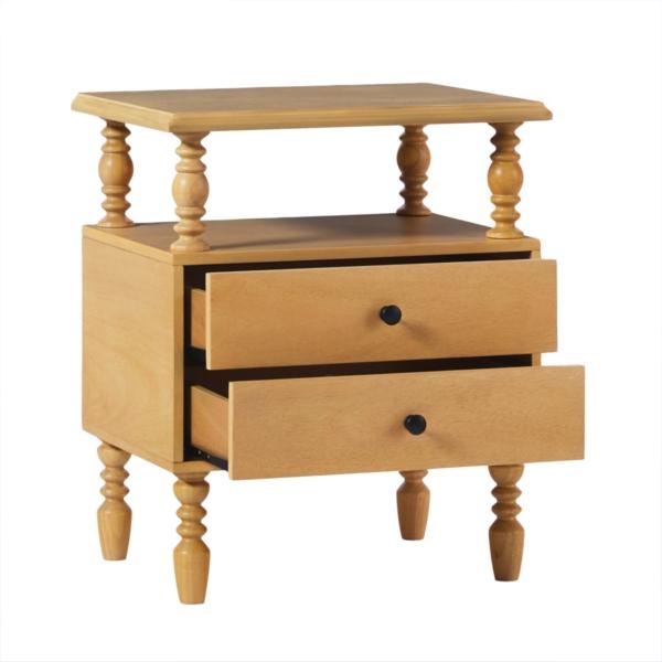 The Natural 2-Drawer Vivienne Nightstand is your favorite antique-made-modern look, featuring charming wood-turning details and the heritage-inspired aesthetic. It’s a stand-out piece where quality and intricacy shine. Overall dimensions Width: 22 in. Depth: 17 in. Height: 26 in. Crafted of solid wood and solid wood veneer Natural wood grain finish Includes two (2) drawers and one (1) shelf Spindle style legs Weight: 36 lbs. Weight capacity: 80 lbs. Assembly required; easy assembly Not intended for commercial use Care: Dust with a soft, dry cloth. This item is available at Kirklands.com only, not available in stores. Please note: this item cannot be shipped to APO/FPO addresses.
