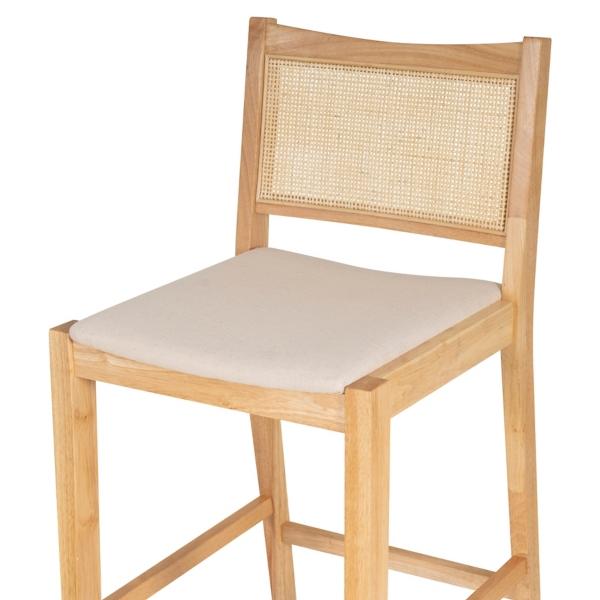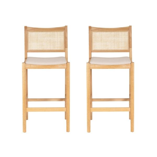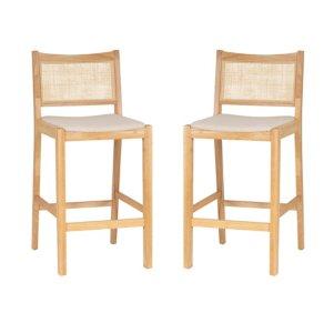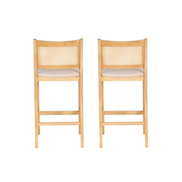 Bring modern style and comfort to your space with these Natural Cane Bauer Bar Stools! Their cane backrests add subtle depth and a natural texture, lending a light and open feel in your kitchen or home bar area. Set includes two (2) bar stools Each bar stool measures 19W x 22.25D x 41.5H in.; seat height: 29.25 in. Crafted of rubberwood and plywood Upholstered in a beige polyester linen blend and filled with high-density foam Natural finish Features a woven cane backrest design Weight capacity: 350 lbs. Assembly required; see Info & Guides in the drop down below to view or print assembly info Not intended for commercial use Care: Spot clean. This item is available at Kirklands.com only, not available in stores. Please note: this item cannot be shipped to APO/FPO addresses.