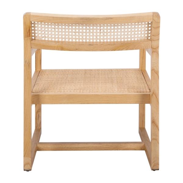 An icon of contemporary coastal chic, this Natural Elm Wood Coastal Accent Chair is a new classic. The open wood frame flaunts a clean-lined silhouette that is beautifully enhanced by its matching cane details! Overall dimensions Width: 25.5 in. Depth: 27.75 in. Height: 29.25 in. Crafted of elm wood Natural finish Natural cane accents Weight: 16.5 lbs. Weight capacity: 275 lbs. Assembly required Not intended for commercial use Care: Dust with a soft, dry cloth.. This item is available at Kirklands.com only, not available in stores. Please note: this item cannot be shipped to APO/FPO addresses.