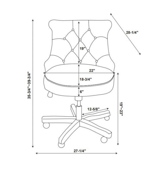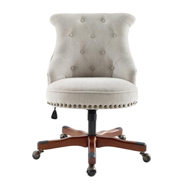 Our sleek, chic Natural Miller Tufted Office Chair will add a unique touch of style to your space. Its neutral finish adds a comfortable, practical feel you’ll love! Chair measures 27.25L x 28.25W x 35.75-39.75H in. Seat height adjusts between 19-23 in. Dark walnut wood base finish Upholstered in natural beige fabric Rolled back design Burnished silver nailhead trim Tufted back and cushioned seat Lever for adjustable height Metal castors provide easy mobility Weight limit: 275 lbs. Assembly required Not intended for commercial use Care: Spot clean as needed. This item is available at Kirklands.com only, not available in stores. Please note: this item cannot be shipped to APO/FPO addresses. WARNING: This product can expose you to chemicals including Di-(2-ethl hexyl) phthalate which is known to the state of California to cause cancer and birth defects or other reproductive harm. For more information go to www.P65Warnings.ca.gov.