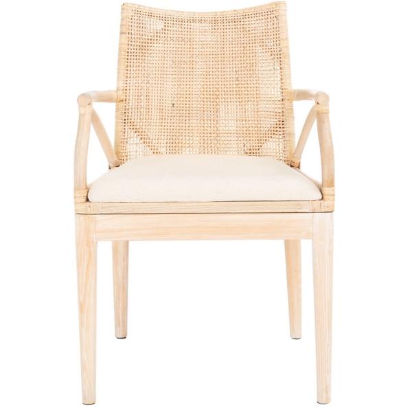 Accent your space with a tropical touch with this Natural Rattan Gianni Accent Chair! The rattan backrest features a classic coastal look, perfectly complementing the breezy whitewashed legs. Chair measures 21.5W x 23.5D x 32.3H in. Crafted with a wood frame Upholstered in cotton Whitewashed finish White upholstery finish Features a natural rattan backrest Weight: 13.5 lbs. Weight capacity: 275 lbs. Assembly required Not intended for commercial use Care: Spot clean. This item is available at Kirklands.com only, not available in stores. Please note: this item cannot be shipped to APO/FPO addresses.