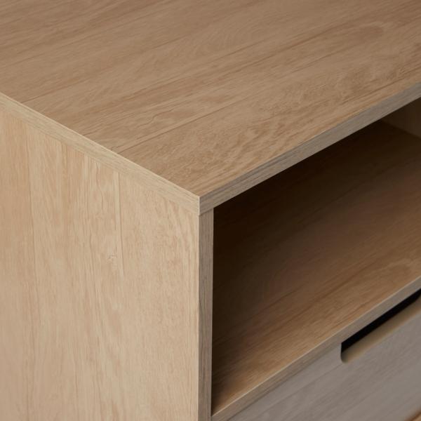 Add style and convenience to your bedroom with this mid-century modern Natural Riviera Single Drawer Nightstand. Keep bedside essentials within reach by storing them in the open storage cubby and single drawer below it. The drawer’s minimalist cutout handle effortlessly modernizes your bedroom or living room. Nightstand measures 19.75L x 15.6W x 21.9H in. Crafted of wood composite and UV foil Natural finish Single cubby for open storage Single drawer for closed storage Tapered legs Weight capacity: 40 lbs. Assembly required; see Info & Guides below to view or print assembly instructions Not intended for commercial use Care: Dust with a soft, dry cloth. This item is available at Kirklands.com only, not available in stores. Please note: this item cannot be shipped to APO/FPO addresses. WARNING: Cancer and Reproductive Harm - For more information go to www.P65Warnings.ca.gov.