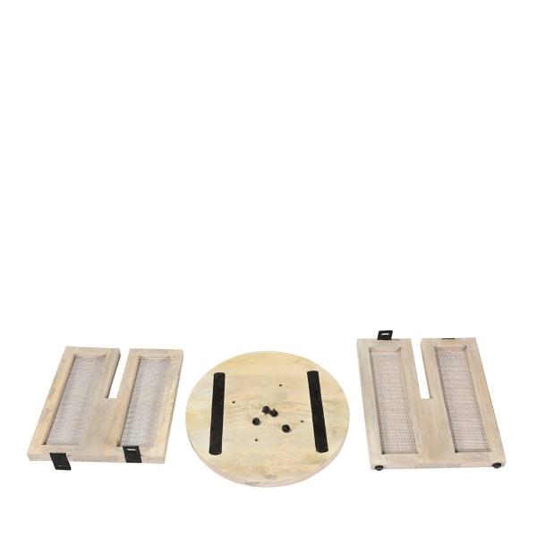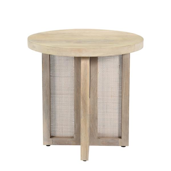 Cozy up every corner of your home with some stylish furniture! You'll love the farmhouse vibe of our Natural Round Wyeth Accent Table in your living room! Overall dimensions Width: 22 in. Depth: 22 in. Height: 22 in. Crafted of mango wood Natural finish Round shape Screen panel base Weight capacity: 250 lbs. Some assembly required Not intended for commercial use Care: Dust with a soft, dry cloth. This item is available at Kirklands.com only, not available in stores. Please note: this item cannot be shipped to APO/FPO addresses.