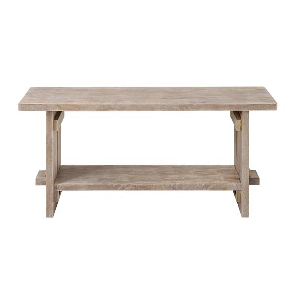 Fill your space with comfortable furniture and eye-catching designs. The Natural Rustic Whitewashed Mango Wood Bench will transform an average space into an oasis of comfort, function, and style. Bench measures 40L x 14W x 18H in. Crafted of solid mango wood Natural tan wood finish Rustic look Farmhouse design One (1) shelf Maximum weight: 400 lbs. Assembly required Not intended for commercial use Care: Wipe with a damp cloth. This item is available at Kirklands.com only, not available in stores. Please note: this item cannot be shipped to APO/FPO addresses.