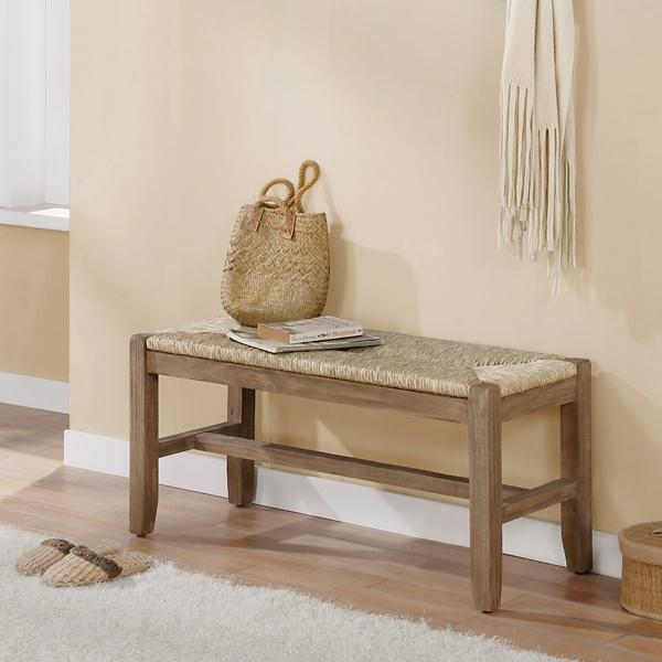 Add some extra seating to your home with this Natural Twisted Seagrass and Wood Bench. Its woven seagrass detail will give your space a lovely, natural touch. You’ll love how it looks in your living room or entryway! Bench measures 40L x 15W x 18H in. Crafted of amber wood and seagrass Brown frame finish Tan seat finish Twisted seagrass seat Weight: 22.25 lbs. Assembly required Not intended for commercial use Care: Dust with a soft, dry cloth. This item is available at Kirklands.com only, not available in stores. Please note: this item cannot be shipped to APO/FPO addresses. WARNING: Cancer and Reproductive Harm - For more information go to www.P65Warnings.ca.gov.