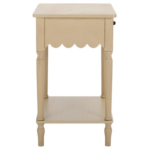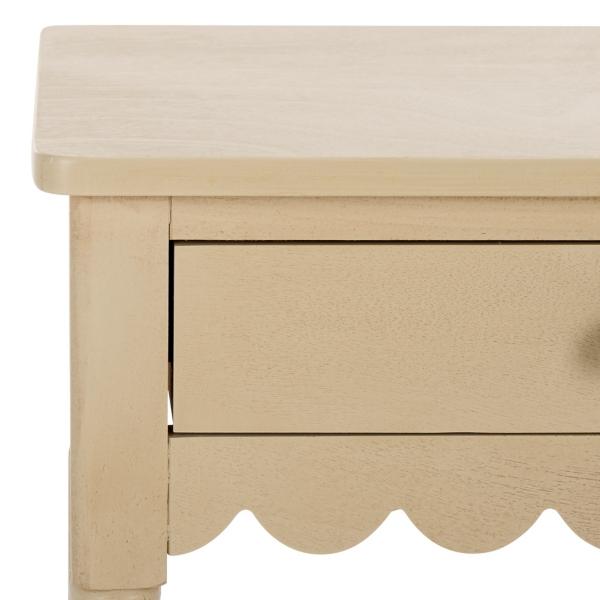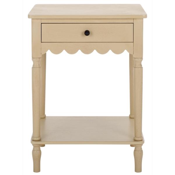Add a delightfully charming touch to any corner with this Natural Wood 1-Drawer Cottage Accent Table! From your bedroom to your living room, this table provides storage while showcasing a stylish scalloped design. Accent table measures 18.9W x 15.7D x 26H in. Crafted of MDF Natural finish Features one (1) pull-out drawer and one (1) lower shelf Scalloped apron Weight: 17 lbs. Weight capacity: 40 lbs. Some assembly required; see Info & Guides in the drop down below to view or print assembly instructions Not intended for commercial use Care: Wipe with a soft, dry cloth. This item is available at Kirklands.com only, not available in stores. Please note: this item cannot be shipped to APO/FPO addresses.