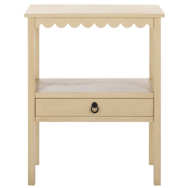Bring understated elegance to your home with the Natural Wood 2-Tier Cottage Accent Table! This beautifully crafted piece features a low-profile design with a convenient drawer for storing small essentials, keeping your space organized without compromising on style. Accent table measures 23.6W x 13D x 29.5H in. Crafted of MDF Natural finish Features one (1) pull-out drawer and one (1) lower shelf Scalloped apron Weight: 20 lbs. Weight capacity: 40 lbs. Some assembly required; see Info & Guides in the drop down below to view or print assembly instructions Not intended for commercial use Care: Wipe with a soft, dry cloth. This item is available at Kirklands.com only, not available in stores. Please note: this item cannot be shipped to APO/FPO addresses.
