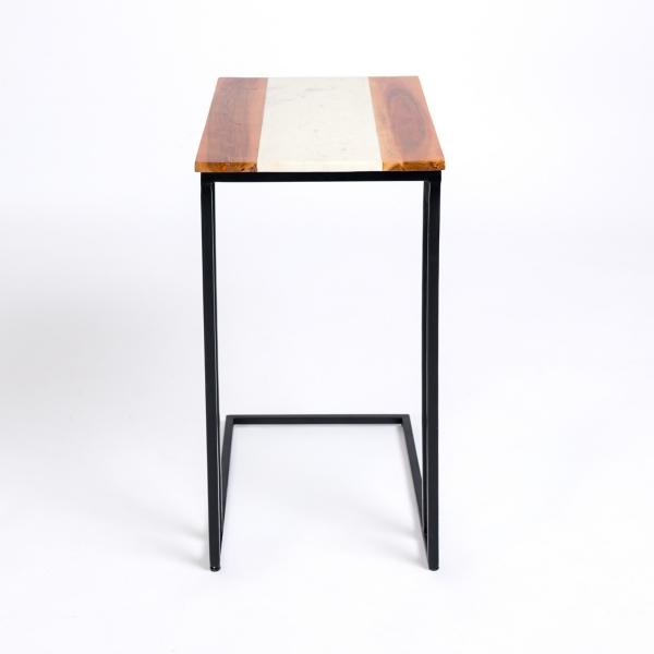 You'll love the modern look of our Natural Wood and Marble Top C-Table! With a stylish combination of materials and a conveniently compact design, this table will elevate any space. Table measures 18L x 13W x 27.5H in. Crafted of metal with a mango wood and marble tabletop Black metal finish Features a C-shape design Weight: 16.55 lbs. No assembly required Not intended for commercial use Care: Wipe with a soft, dry cloth. Contact your local Kirkland's store for availability. Quantities and selection may vary by location.
