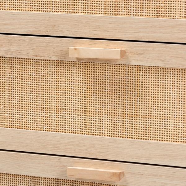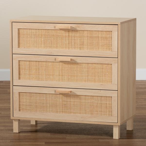 Add a stylish storage solution to any room in your home with this Natural Wood and Rattan 3-Drawer Storage Cabinet! With three spacious drawers and stylish rattan insets, this cabinet is perfect for any space from your entryway to your bedroom. Cabinet measures 31.5W x 15.7D x 31.5H in. Crafted of MDF and rattan Natural finish Features three (3) drawers Rattan drawer fronts Rectangular drawer handles Square legs Drawers measure 29.9W x 14.4D x 8.7H in. Weight: 55 lbs. Anti-topple kit is provided Assembly required Not intended for commercial use Care: Wipe with a soft, dry cloth. This item is available at Kirklands.com only, not available in stores. Please note: this item cannot be shipped to APO/FPO addresses.