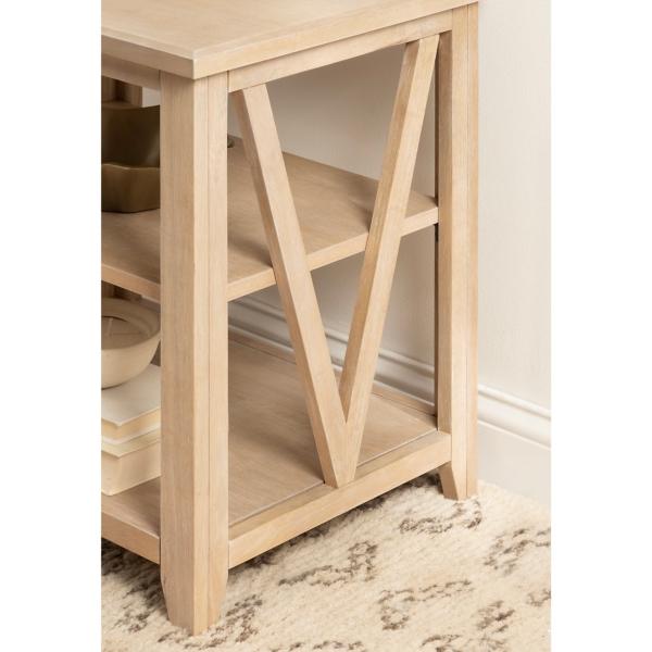 Enhance your living space with this Natural Wood Broadbridge Accent Table, a combination of functionality and modern flair! This table includes two shelves below the top surface, providing ample storage space for magazines, remote controls, or other essentials. Accent table measures 23W x 18D x 23.5H in. Crafted of mango wood Light natural finish Geometric design Features three (3) tiers Weight: 27 lbs. Weight capacity: 50 lbs. Easy assembly required Not intended for commercial use Care: Wipe with a soft, dry cloth. This item is available at Kirklands.com only, not available in stores. Please note: this item cannot be shipped to APO/FPO addresses.