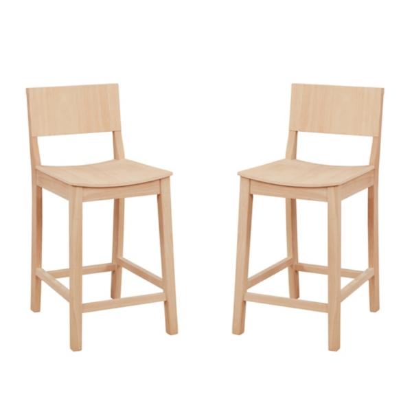 With their simple, classic design, these Natural Wood Devin Counter Stools will easily complement your decor while also refreshing your space. Give your kitchen an inviting look with this charming set! Set includes two (2) stools Each stool measures 16.25L x 20W x 35.75H in.; seat measures 23.75H in. Crafted of solid wood and plywood Natural finish Simple design with curved seat Ideal for counter 35" to 39" high Weight capacity: 400 lbs. Assembly required Not intended for commercial use Care: Dust with a soft, dry cloth. This item is available at Kirklands.com only, not available in stores. Please note: this item cannot be shipped to APO/FPO addresses. WARNING: This product can expose you to chemicals including DEHP, which are known to the state of California to cause cancer and birth defects or other reproductive harm. For more information go to www.P65Warnings.ca.gov.