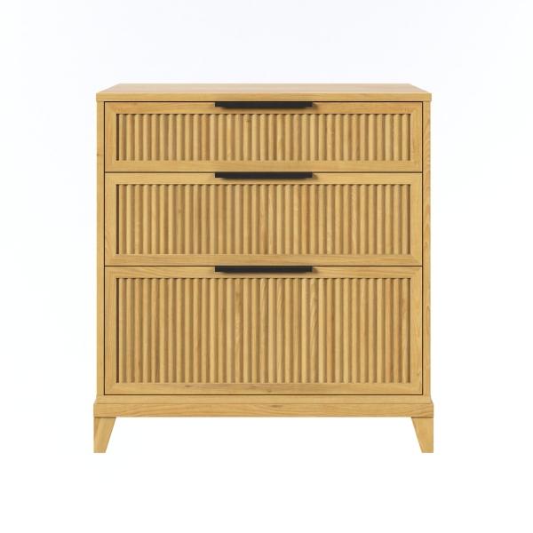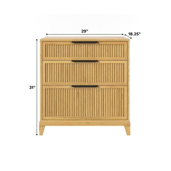 Optimize your organization with this Natural Wood Reeded Bedroom Dresser! This dresser features three drawers on smooth glides to offer a spot to tuck away your comfy sweater collection or extra towels and linens. Dresser measures 29W x 18.25D x 31H in. Crafted of pine wood Natural finish Features three (3) drawers in small, medium, and large sizes Reeded drawer front design Weight: 90 lbs. Assembly required; see Info & Guides in the drop down below to view or print assembly info Not intended for commercial use Care: Wipe with a soft, dry cloth. This item is available at Kirklands.com only, not available in stores. Please note: this item cannot be shipped to APO/FPO addresses.