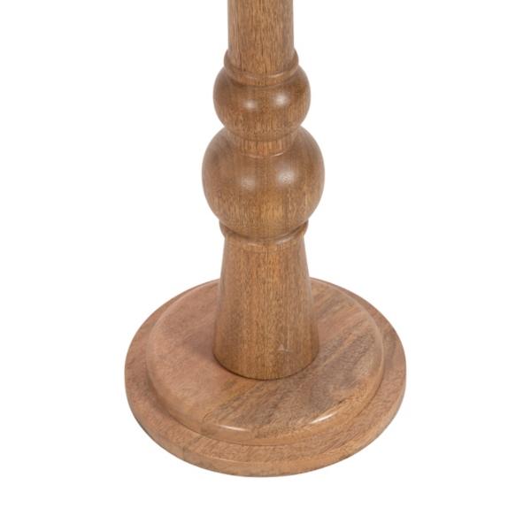 Add an antique-inspired element to your space with this Natural Wood Wegner Accent Table! This table features a turned leg base and natural woodgrain, making each table one-of-a-kind. Accent table measures 23H x 8 in. in diameter Crafted of mango wood Natural finish Round shape Features a turned wood design Weight: 3 lbs. Weight capacity: 7 lbs. Some assembly required Not intended for commercial use Care: Wipe with a soft, dry cloth. This item is available at Kirklands.com only, not available in stores. Please note: this item cannot be shipped to APO/FPO addresses.