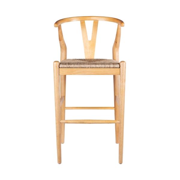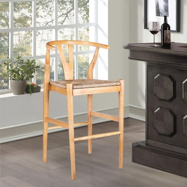 Refresh your kitchen with this Natural Wood Wishbone Bar Stool! With natural materials and a sleek design, it's perfect for bringing a clean, modern look to your home. Bar stool measures 20.5W x 20.75D x 43.25H in.; seat height: 29 in. Crafted of rubberwood Natural finish Handwoven natural paper rope seat Features a wishbone style backrest Weight: 20 lbs. Weight capacity: 300 lbs. Assembly required Not intended for commercial use Care: Wipe with a soft, damp cloth. This item is available at Kirklands.com only, not available in stores. Please note: this item cannot be shipped to APO/FPO addresses.