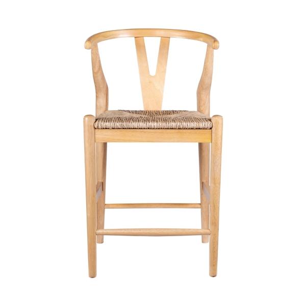 Refresh your kitchen with this Natural Wood Wishbone Counter Stool! With natural materials and a sleek design, it's perfect for bringing a clean, modern look to your home. Counter stool measures 21.5W x 21.02D x 36.75H in.; seat height: 24 in. Crafted of wood Handwoven natural paper rope seat Natural finish Features a wishbone style backrest Weight: 20 lbs. Weight capacity: 300 lbs. Assembly required Not intended for commercial use Care: Wipe with a damp cloth. This item is available at Kirklands.com only, not available in stores. Please note: this item cannot be shipped to APO/FPO addresses.