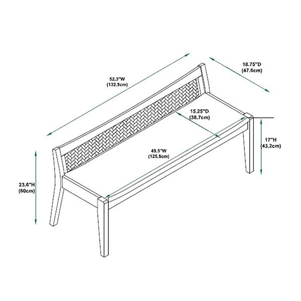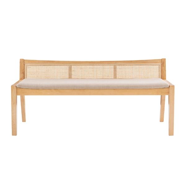 Make a statement in any living space with this beautiful bench. The Natural Woven Rattan Back Minimalist will help you create a stylish and inviting space to host family and friends. Bench measures 52.4L x 18.75W x 23.4H in. Crafted of wood, polyester, and rattan Tan wood finish Tan rattan finish Tan upholstery Rattan back design Maximum weight: 275 lbs. Assembly required Not intended for commercial use Care: Spot clean only. This item is available at Kirklands.com only, not available in stores. Please note: this item cannot be shipped to APO/FPO addresses. WARNING: This product can expose you to chemicals including di-(2-ethl hexyl) phthalate which is known to the state of California to cause cancer and birth defects or other reproductive harm. For more information go to www.P65Warnings.ca.gov.