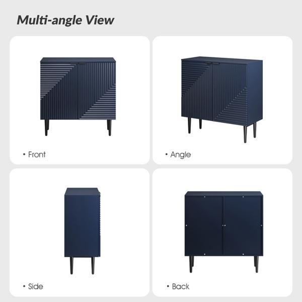 Elevate your space with this sleek and contemporary Navy Burkart 2-Door Cabinet! Inside, generous storage space makes it perfect for organizing essentials, whether in your living room, hallway, or bedroom. Cabinet measures 35W x 15.7D x 35H in. Crafted of manufactured wood and metal Navy blue finish Features geometric door fronts Adjustable interior shelves Weight: 67 lbs. Weight capacity: 150 Assembly required Not intended for commercial use Care: Wipe with a soft, dry cloth. This item is available at Kirklands.com only, not available in stores. Please note: this item cannot be shipped to APO/FPO addresses.