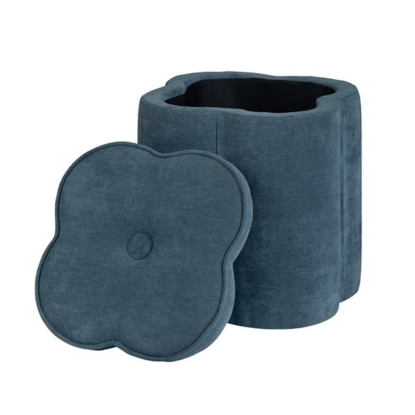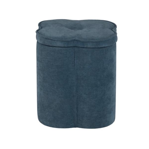 Brighten up your teen girl’s bedroom with our Navy Chenille Flower Ottoman. She will love its soft to the touch fabric and adorable floral shape. Ottoman measures 18H x 18 in. in diameter Frame crafted of wood composite Upholstered in navy chenille fabric Lid accented with a button detail and piped edges Removable lid lifts to reveal storage space Flower shape Weight: 7 lbs. Weight capacity: 100 lbs. No assembly required Not intended for commercial use Care: Spot clean only. This item is available at Kirklands.com only, not available in stores. Please note: this item cannot be shipped to APO/FPO addresses. WARNING: Cancer and Reproductive Harm - For more information go to www.P65Warnings.ca.gov.