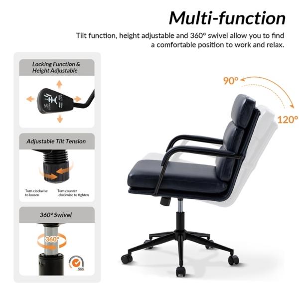 You’ll start looking forward to work days with this Navy Faux Leather Indigo Office Chair! This luxurious chair features plush seating, chic faux leather, swivel capability, and a tilt mechanism to make working comfortable and stylish. Office chair measures 23.5W x 27.5D x 35-38H in. Crafted with a wood frame and metal base Upholstered in navy blue faux leather and filled with high-density foam Black metal finish Features adjustable tilt function with tilt lock mechanism 360 degree swivel Adjustable height Seat measures 20W x 19D x 18.5-21.5H in. Weight: 28 lbs. Weight capacity: 250 lbs. Assembly required Not intended for commercial use Care: Wipe with a soft, dry cloth. This item is available at Kirklands.com only, not available in stores. Please note: this item cannot be shipped to APO/FPO addresses.