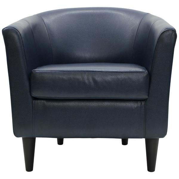 The Navy Faux Leather Winslow Accent Chair features a classic yet contemporary look that blends with a variety of settings. The low maintenance faux leather is sure to create a sense of effortless luxury. Chair measures 27.5L x 30.5W x 32H in.; seat measures 19H in. Crafted of faux leather and resin High-density foam fill Upholstered in a navy faux leather Black leg finish Padded, removable seat Crafted with sustainable materials Weight capacity: 300 lbs. Some assembly required Made in the United States Not intended for commercial use Care: Dust with a soft, dry cloth. This item is available at Kirklands.com only, not available in stores. Please note: this item cannot be shipped to APO/FPO addresses.