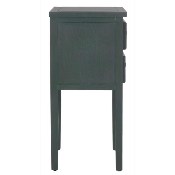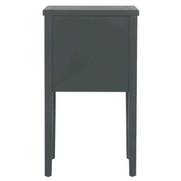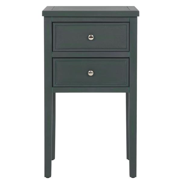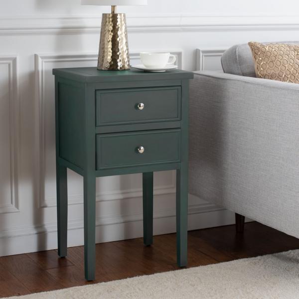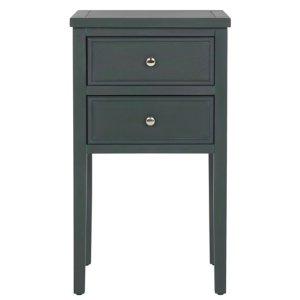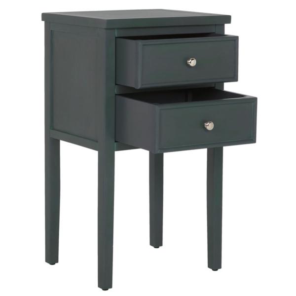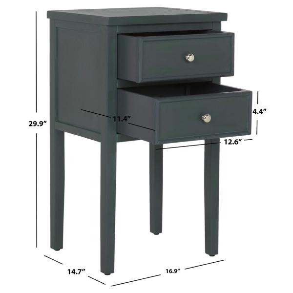 A French farmhouse take on a traditional end table, this Navy Pine Mirsade Traditional Accent Table makes a chic addition to any interior. Its dark blue finish and silver drawer pulls complete the look. Overall dimensions Width: 16.9 in. Depth: 14.7 in. Height: 29.9 in. Crafted of pine wood and metal Navy finish Features two (2) drawers Silver drawer pulls Weight: 18.7 lbs. Weight capacity: 35 lbs. No assembly required Not intended for commercial use Care: Dust with a soft, dry cloth. This item is available at Kirklands.com only, not available in stores. Please note: this item cannot be shipped to APO/FPO addresses.
