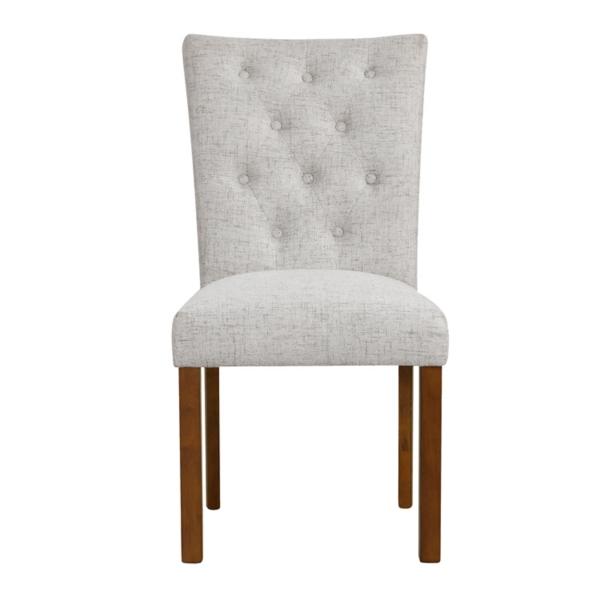 Upgrade your dining room with these Neutral Tufted Parsons Dining Chairs! The classic design and sophisticated details will elevate your space. The neutral upholstery can complement any décor style! Set includes two (2) chairs Overall dimensions Width: 20.5 in. Depth: 26.5 in. Height: 37.5 in. Frames crafted of wood Upholstered in polyester with high-density foam fill Brown wood leg finish Neutral upholstery finish Features button tufted backrests Weight capacity: 250 lbs. each Assembly required Not intended for commercial use Care: Spot clean. This item is available at Kirklands.com only, not available in stores. Please note: this item cannot be shipped to APO/FPO addresses.
