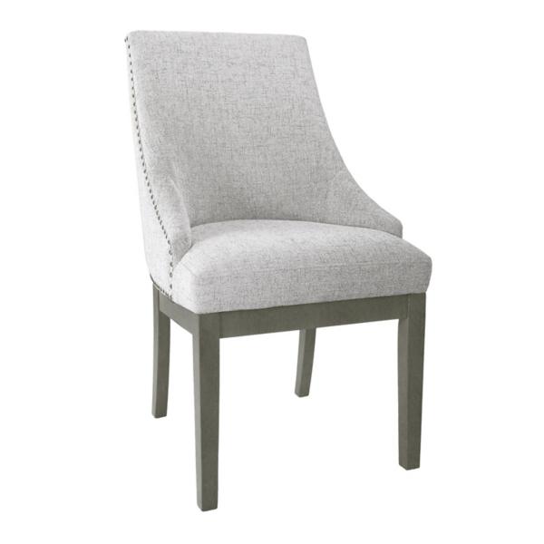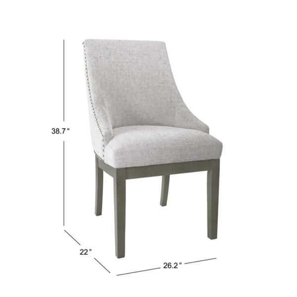 Upgrade your dining room with this Neutral Upholstered Barrel Dining Chair! With sophisticated details like nailhead trim and an armless design, this chair will effortlessly elevate your space. Overall dimensions Width: 26.2 in. Depth: 22 in. Height: 38.7 in. Frame crafted of wood Upholstered in polyester with high-density foam fill Brown wood leg finish Neutral upholstery finish Features a curved backrest Accented with nailhead trim Weight capacity: 250 lbs. each Assembly required Not intended for commercial use Care: Spot clean. This item is available at Kirklands.com only, not available in stores. Please note: this item cannot be shipped to APO/FPO addresses.