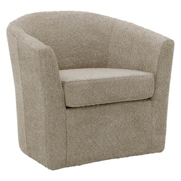 Comfort meets style with our Oatmeal Upholstered Swivel Accent Chair! Featuring a supportive back, armrests, and a thick cushion, this chair is perfect for setting up a cozy nook or relaxing den. Accent chair measures 30.5W x 27D x 30H in. Crafted with a wood and metal frame Upholstered in oatmeal polyester and filled with high-density foam Features a traditional club chair design Flared arms 360 degree swivel capability Weight: 34 lbs. Weight capacity: 300 lbs. No assembly required Made in the United States Not intended for commercial use Care: Spot clean. This item is available at Kirklands.com only, not available in stores. Please note: this item cannot be shipped to APO/FPO addresses.