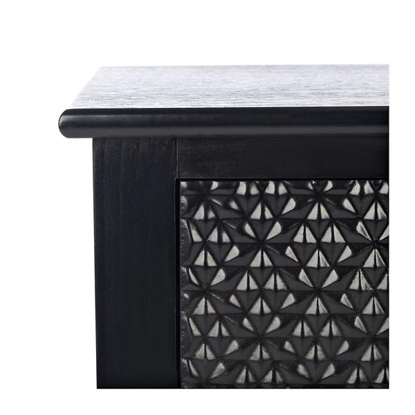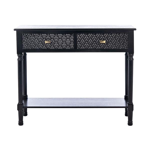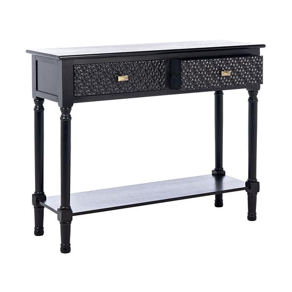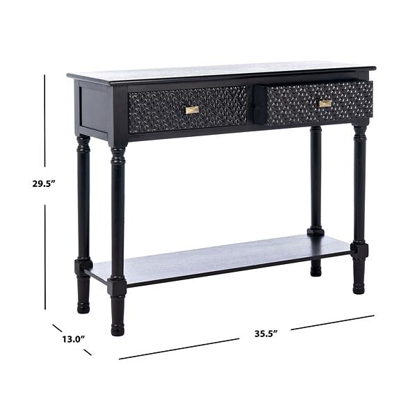 Don't settle for basic, boring, or blah. The Onyx Raised Texture Diamond Console Table has the eye-catching style and solid construction you need to take your living space's look to the next level. Table measures 35.5L x 13W x 29.5H in. Crafted of metal and wood Black wood finish Gold metal finish Raised diamond texture design One (1) drawer Assembly required Not intended for commercial use Care: Dust with a soft, dry cloth. For persistent spots, gently clean with a soft cloth and a solution of water and mild soap, make sure to wipe dry. Use adhesive felt pads, coasters, and placemats to protect your furniture. This item is available at Kirklands.com only, not available in stores. Please note: this item cannot be shipped to APO/FPO addresses. WARNING: This product can expose you to chemicals including wood dust which is known to the state of California to cause cancer and birth defects or other reproductive harm. For more information go to www.P65Warnings.ca.gov.