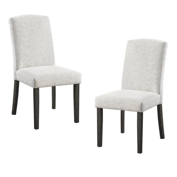 Updating your dining room is a breeze with these Oyster Gray Everly Dining Chairs. Featuring cool, neutral tones and a comfortable design, these are the perfect chairs for gathering around the table! Set includes two (2) chairs Each chair measures 19L x 25.75W x 38H in.; seat measures 19.75H in. Crafted with a solid wood and plywood frame Upholstered in gray fabric Padded seat supported by sinuous spring construction Brown leg finish Traditional high-back design Weight capacity: 200 lbs. Assembly required Not intended for commercial use Care: Spot clean using a dry cloth and the foam from a water-based cleaning agent. This item is available at Kirklands.com only, not available in stores. Please note: this item cannot be shipped to APO/FPO addresses. WARNING: This product can expose you to chemicals including toluene, which are known to the state of California to cause cancer and birth defects or other reproductive harm. For more information go to www.P65Warnings.ca.gov.